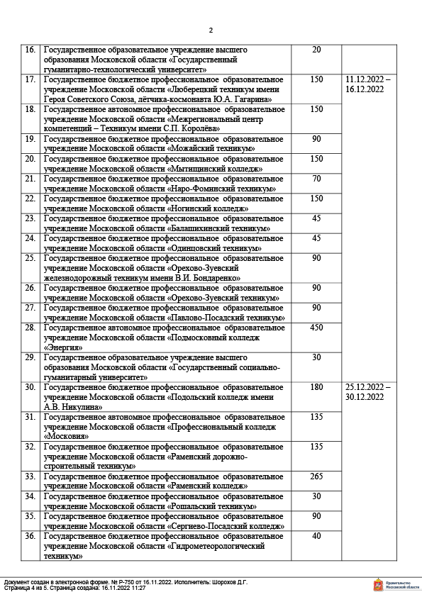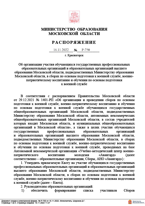 Распоряжение Минобразования Московской области о сборах было подписано 16 ноября. Согласно документу, колледжи и вузы должны отправить на сборы начальной военной подготовки от 30 до 450 совершеннолетних студентов, квота указана на каждое учреждение.